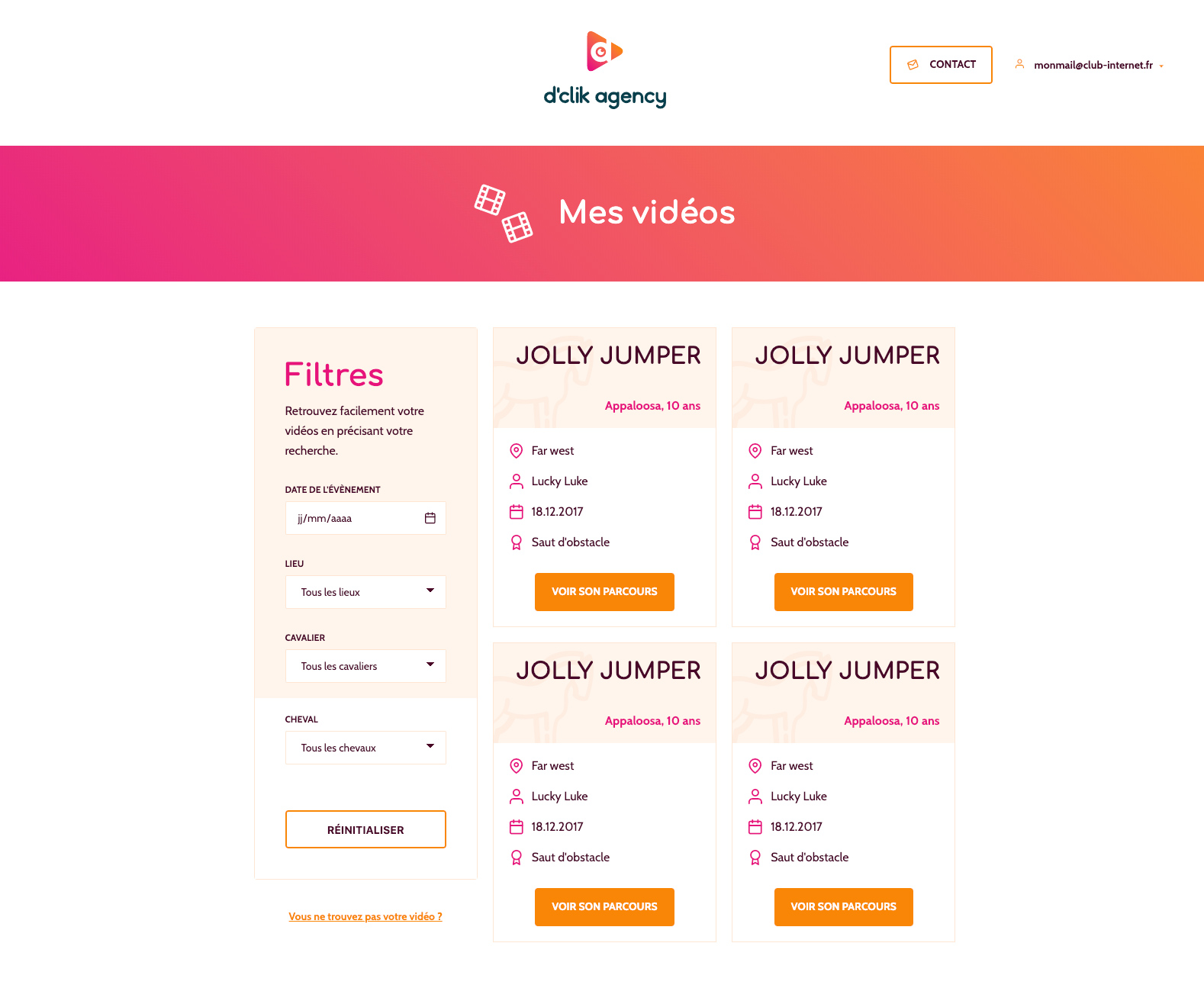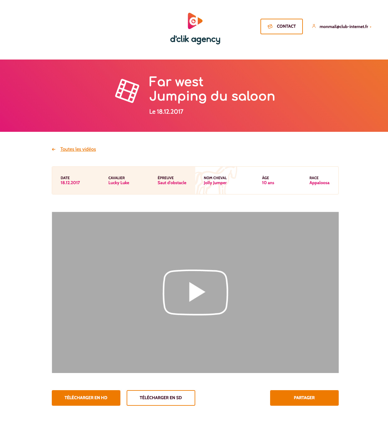 Au-delà des pages publiques du site, nous avons essentiellement travaillé sur une interface privée, dédiée aux cavaliers de courses hippiques qui souhaitent visionner les compétitions passées. Après une analyse technique du besoin et du service à apporter, nous avons déployé une interface sur mesure (indexation, filtres de recherche, partage) et accessible sur mobile — avec Damien Legendre côté webdesign.