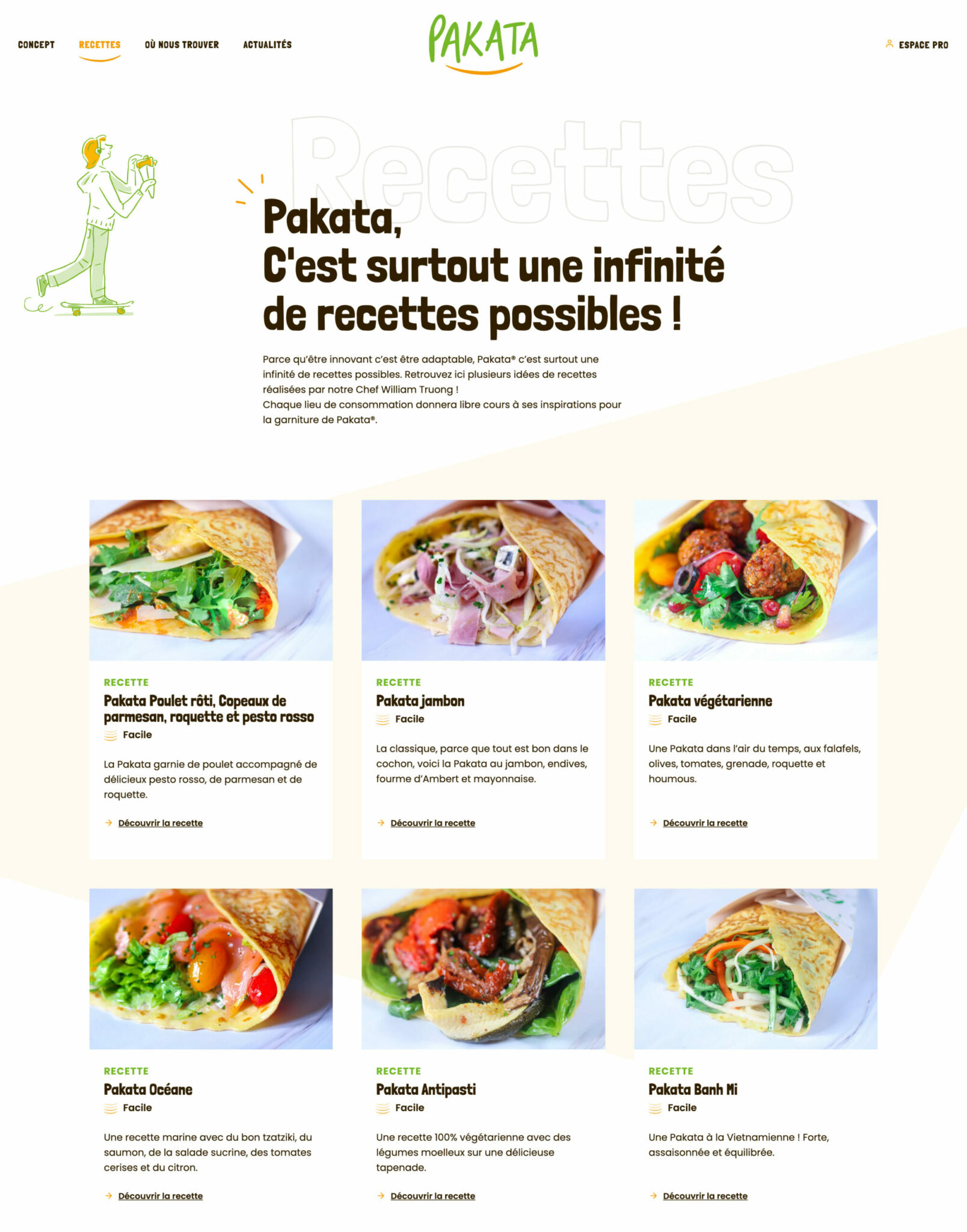 Âmes sensibles à la gourmandise s’abstenir ! Ce site signé Studio 101 x Un coin d'pixel invite tout bonnement à se jeter sur la meilleure création bretonne qui soit : la crêpe. Pour cette entreprise familiale, nous avons imaginé un nouvel univers graphique et opté pour des images en WebP — un format d’image matricielle, aussi léger qu’intéressant côté rendu pour son impression en transparence. Tout n’est que rondeur, profondeur et délice pour les yeux !
