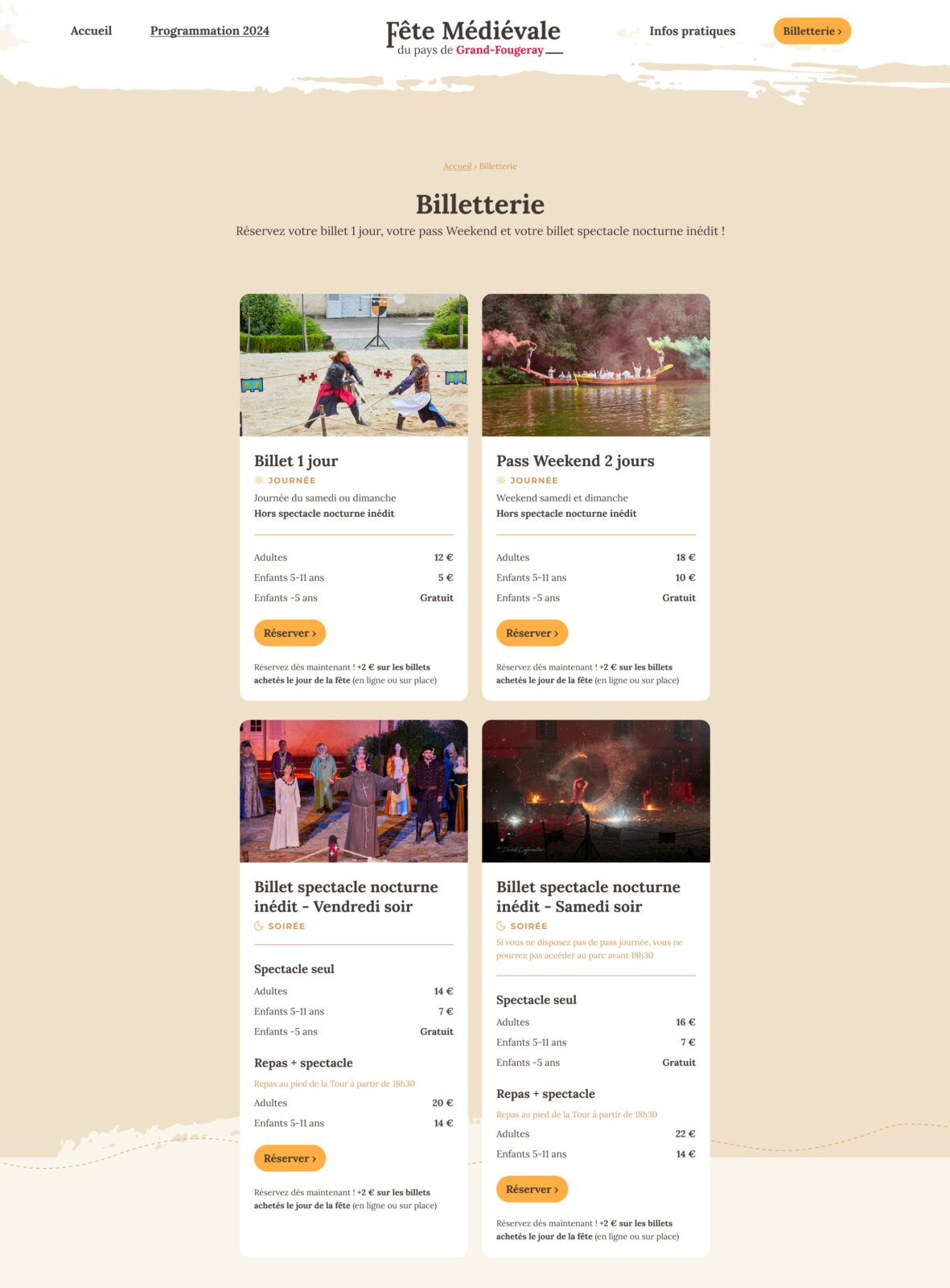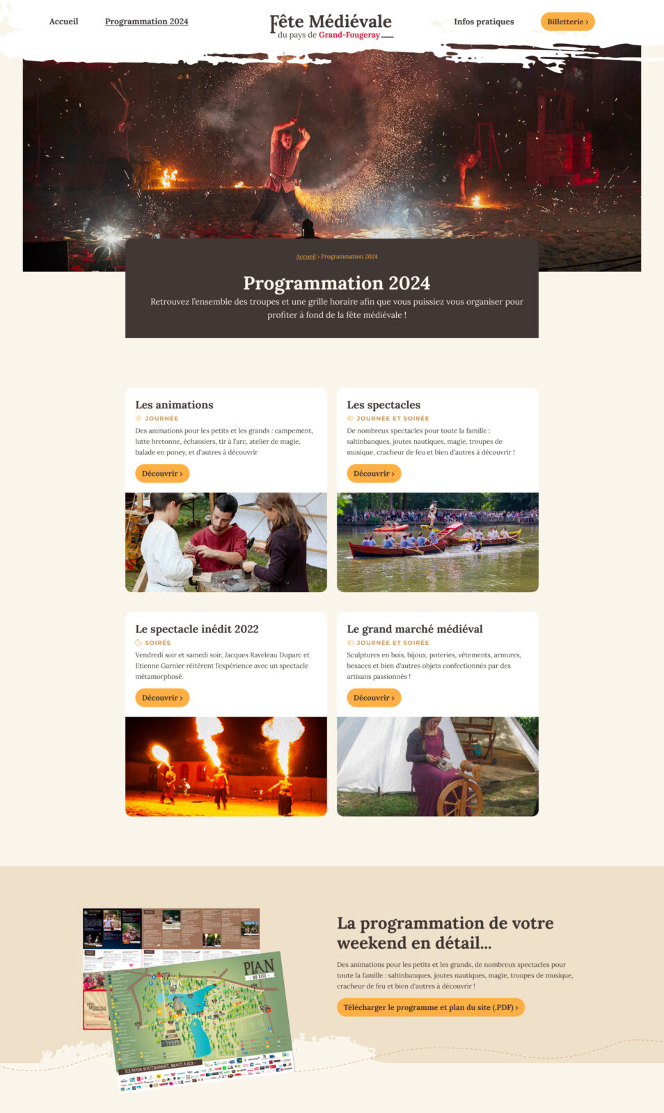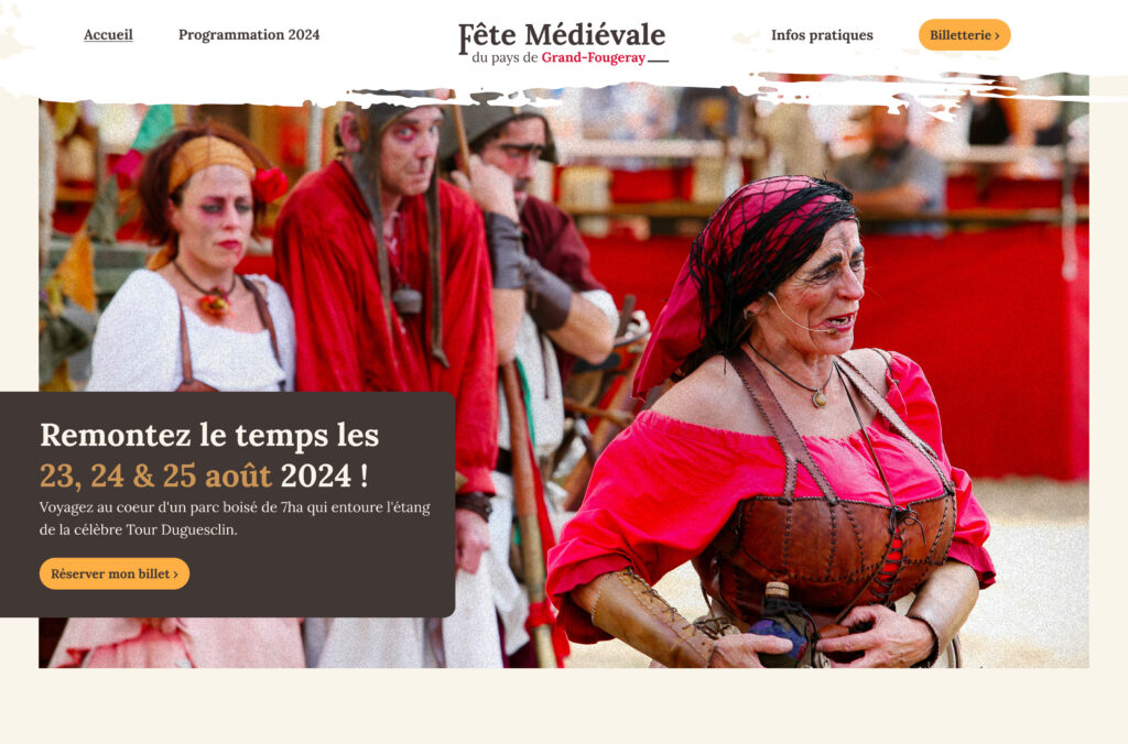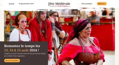 Réalisation bénévole du site d’un événement culturel qui se tient chaque année autour de la Tour Duguesclin à Grand-Fougeray, avec spectacles, animations, marché d’artisans et reconstitutions historiques pensées pour tous les âges. Le site présente la programmation (animations de rue, joutes, musique et funambules), les informations pratiques (horaires, billetterie, accès) et les détails sur les temps forts de l’édition à venir, tout en reflétant l’ambiance conviviale et festive propre à cette fête médiévale. L’organisation des contenus facilite l’accès aux infos clés pour les visiteurs et met en avant l’esprit d’engagement des bénévoles qui animent l’association.